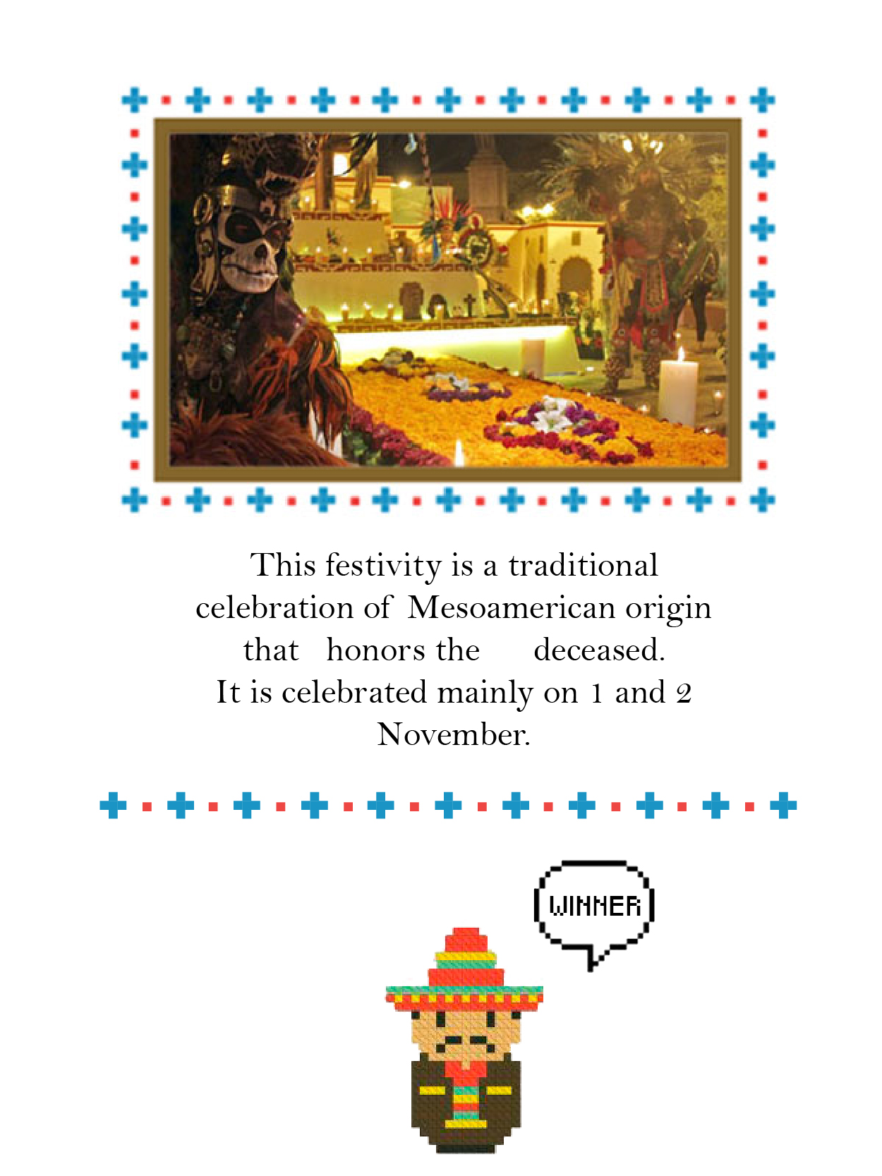 Instructions: On your rigth you're gonna find an image and the meaning of the word you have to guess. Pick a letter and if the letter is in the word it's gonna appear in the red box. All the letters are gonna appear in the orange box,DON'T PICK THE SAME LETTER TWICE!